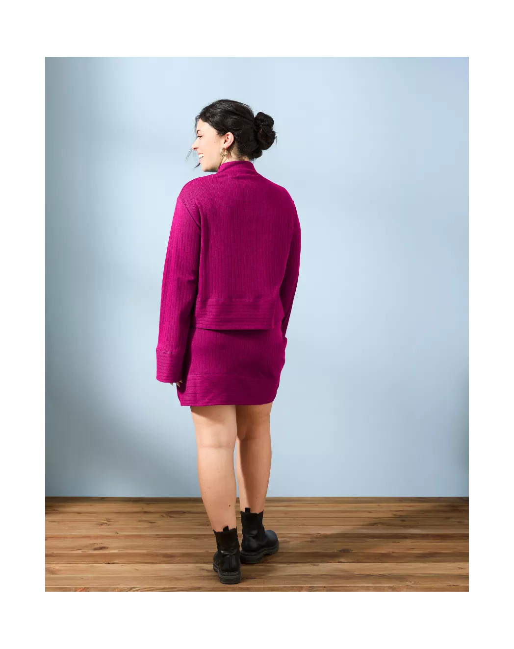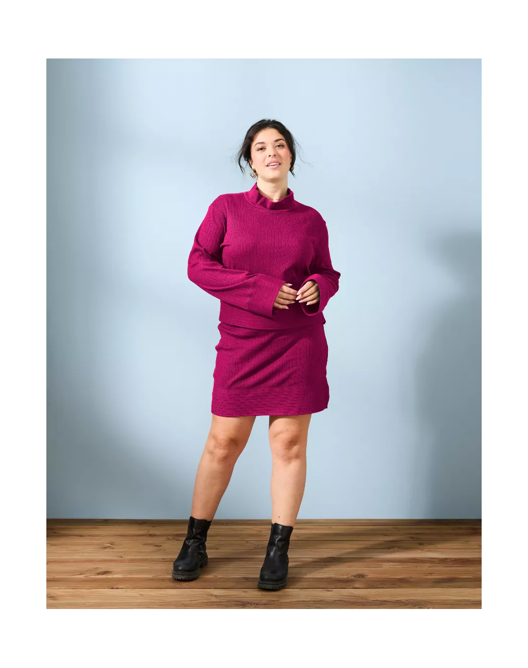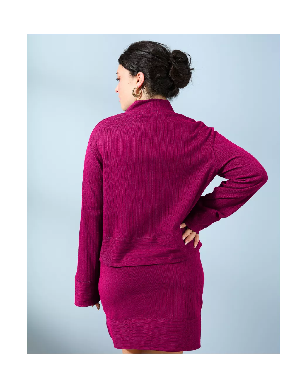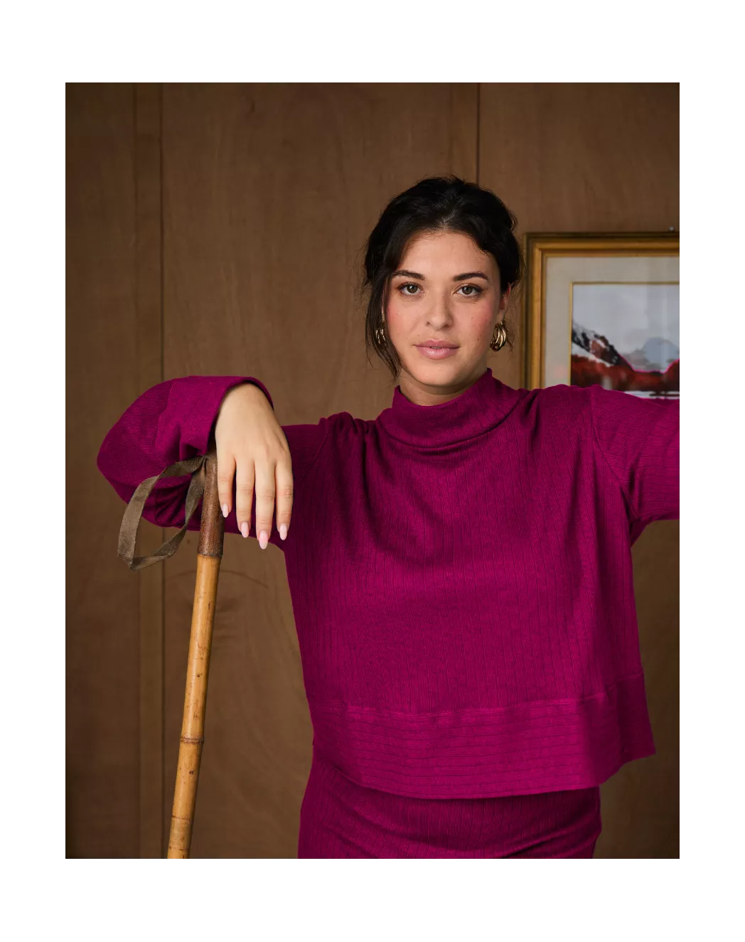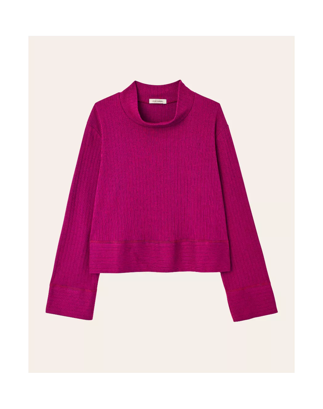 Le bureau de style a imaginé ce top comme un allié de douceur et de style. Tricoté en laine et coton, il offre une chaleur légère et un confort immédiat sur la peau. Son col montant dessine une silhouette élégante et enveloppante, tandis que le coloris camélia, unique et lumineux, capte le regard sans effort. La maille, souple, mais structurée, assure un tombé parfait et durable, révélant le savoir-faire discret du studio. Une pièce pensée pour se porter seule ou en superposition, qui transforme un basique en un essentiel de saison.